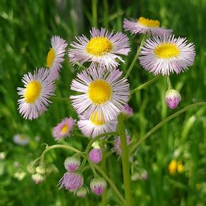 こんにちは😊✋ ピンク色の ハルジオン🩷🤍 ジュウガツザクラ🌸 の下で咲いていました🤗 ジュウガツザクラの 葉っぱの間から 光が差し込んで 綺麗でした✨ ウォーキングの時 4月17日 撮影しました🤗📱✨