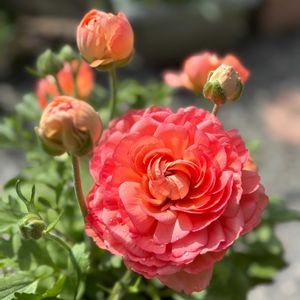 3年目のラナンキュラス キプロアプリコット 今年は、花がとても綺麗に咲いてます(*´︶`*)♡きれ〜い♪ 3年目といっても、ラックスのように同じ鉢で夏越しさせてるわけではなく、掘り起こした根塊を素焼き鉢に埋めて夏越しさせてますので、植え付ける時は、根塊を一つ一つ分けてます。 なので、一つの株が大きくなったということではないです。