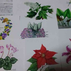 6月30日に愛知県豊橋市の 豊橋美術博物館に行き ボタニカルアート🎨展を見て来ました🎵🤗🌿💫 その時に10枚の絵葉書を購入しました🥰 その内の7枚の写真です🎵🤗 出展者の名前は写り込まない様に撮影して有ります🎵🎶🤗 出展者からクレームが入ったら→投稿を🆑削除しますネ🤗 上の『カシワバアジサイ』から 時計回りに『 コウホネ 』→🌼『オリエンタルリリー』🌼『ポインセチア』💠『 シクラメン 』『ビオラ』等です🤗💠🌼🌿💫