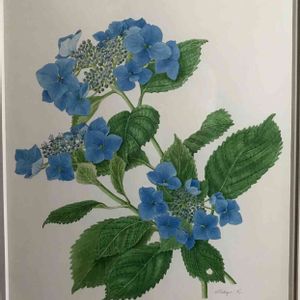 おはようございます☀ 先日投稿したガクアジサイを描いたものです。 圧倒されるほどの深いブルーに怯んだ覚えが あります。 紫陽花も終盤になりました。 季節が移っていきますね🌿