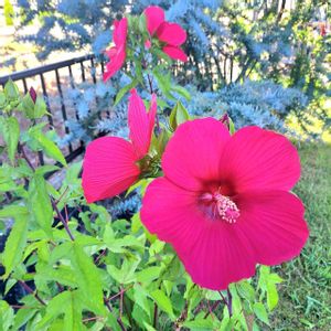 おはようございます。 今年も庭にタイタンビカスが 咲き始めましたねぇ〜🤗 毎年ニョキニョキって 出てくれるからうれしぃねぇ〜〜 後はハイビ🌺さんに 青い花の2人です。💙 . . 𖥧 𖥧 𖧧 ˒˒. .