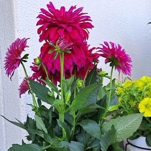 新入りさん❗ダリアマジョーレ❤️ 大輪ダリアだそうです❤️ 玄関に置いたから癒されるわ♬ 🏷️ラン・ララ~ん♡♡ 🏷️とにかくGS 楽しもう! 🏷️ありがとうの花❣️