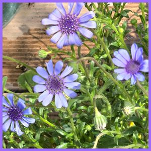 おはようさん🤗 フェリシアさんです。 今年は苗を早くに 見つけました。 蕊までが紫色の〜 可愛いお花さんです。 - ̗̀ෆ(˶'ᵕ'˶)ෆ ̖́-(^-^) 3枚目は ブルーデージーさん 昨年 フェリシアさんに 出会えなかったので… ブルーデージーを 買いました。 今は、冬越しして 沢山蕾を付けています。 ブルーデージーの蕊は 黄色です。 良く似たお花です。 フェリシアさんは 夏越しが難しいようです。 でも〜今年は出会えて ・:*:・・:*:・♪・:*:・・:*:・♪・:*:・・:*:・・*:(´∀`人)ラッキー★ ⚘⚘⚘⚘⚘⚘⚘₊✼୭* テクテク🚶♀11,329歩です