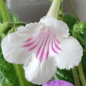 ストレプトカーパス実生苗18号 これも蕾の時から白予想で、私のオリジナルのシュプールの子だね🤍💚 でも一寸違うな〜😉