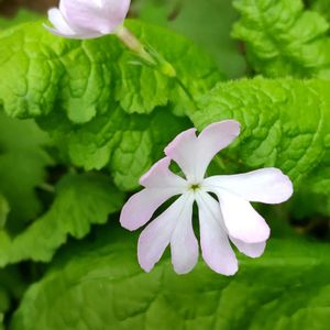 可愛い山野草達も、ひっそりと咲いています。 ✲ ニホンサクラソウが、今年は二輪咲いてくれました。 ✲ 昨年、娘からプレゼントされたタイツリソウ。 可愛らしい鯛が、ちょっとぶら下がって… 嬉しいなぁ〜 ✲ ピンクと黄色のイカリソウも、陰の方でひっそりと… ✲ イチリンソウ…かな? 可愛いお花です。