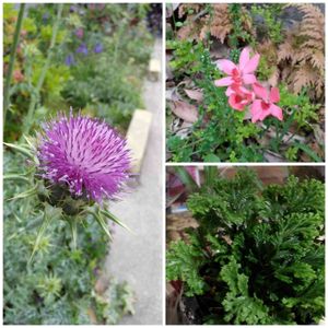 左側がマリアアザミ 🌱庭で見付けたフリージアラクサ 下がテマリカタヒバ🌿