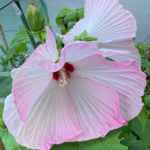 暑中お見舞い申し上げます🌱 ご心配な事が多いと存じますが お花や緑に癒されながら この夏を乗り越えて参りましょう💝 ご近所の庭に美しく咲いた アオイ科の芙蓉の花 見ているだけで優しい気持ちになります