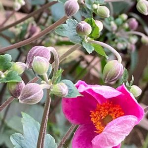 ご近所の秋明菊が咲き始めました まん丸蕾がたくさんついて🤗 別名貴船菊、今日のお花ですね