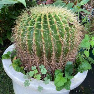 散歩道から見えるおうちの庭の大きなサボテンがずーっと気になってたんですがちょうどおうちの方がみえたので庭に入らせてもらって写真を撮りました✌️ 直径30センチぐらいです🤗