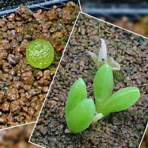 本日の1枚は〜🍃 種蒔きから2ヶ月「我が家の多肉実生苗」です💡 確かGW前に某オークションで落として5月3日に蒔きました 左 コノフィツム ムンダム 右 ギバエウム ハーゲイ(波枕) 何か間違ってるのか、あまり発芽率の良くない二種… ハオルチアに使ってる培養土の上に芝目土を5ミリ程敷きLED下で腰水管理?放置?(笑)してます🙄 室内なんで夏の暑さは平気ですが、自分の管理で上手く育ってくれるかなぁ…