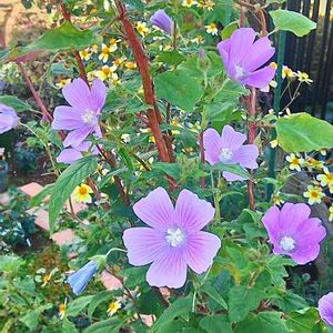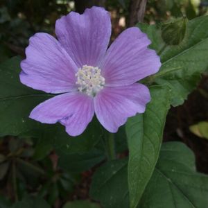 花壇で咲いていた花です。 アオイ科のアノダという花のようです🌸 キャンディカップやクリスタータという品種があるようです。