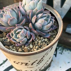 「すみれ牡丹」 ベンケイソウ科 エケベリア属 どこかで見たすみれ牡丹がすごくきれくて「欲しい!」と思って。 でも 先代は👼に。 今度こそ 元気に育てたい!😄