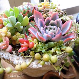 明けましておめでとうございます🎍 昨年は植物でいろんな出会い・繋がりがあり、嬉しい1年でした😊 今年も皆さんにとって素晴らしい年になることを願ってます🤗 今年もよろしくお願いします💕 さて、写真はカクトロコさんの多肉福袋❣️ 実は年末に既に発売になっていてGETしました😊 どれも持ってない多肉ちゃんばかり😃 カクトロコさんの培養土は、以前セメントリースの寄せ植えで使って良かったので欲しいと思っていたところ‥ そして、サボテン型の鉢がほっこりキュート❣️ お得で大満足の福袋でした🤗