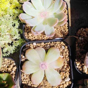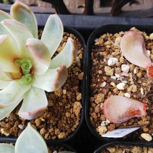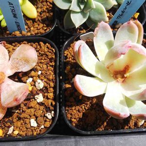 ウチにある牡丹さん✨ ①月下牡丹 ②みどり牡丹 ③すみれ牡丹 ④白牡丹...と紹介したかったのに、写真撮る前にジュレてあっという間にバラバラに😭 100均で白牡丹(たぶん)見つけて喜んで寄せ植えに入れました。で、白牡丹だけジュレる(;A;) 白牡丹はジュレやすいのでしょうか...GSでもよくジュレたとpicがあるような😓 ④左が白牡丹、右が静夜の葉っぱ...たぶん💦一緒にしてたら分からなくなっちゃった(;´∀`)