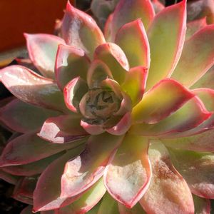 おはようございます〜¨̮♡ ✧︎* 今日もいい天気♫ 昨日の夜から長男が発熱… 旦那が午前中、私が午後からの交代看護です(`・⊝・´)キュッ 午前中だけ仕事頑張ります!!! ⬆️美味しそうな虹の玉ちゃん🤤 左の子は葉挿しっこ♡まだ赤くてかわいい♡♡♡右は挿し木のこ♡みどりんりん♫ ↙️ハートカズラちゃんの新芽が出てきてる〜♡♡♡縁がピンクできゃわわ〜❤️❤️↗️朝日シリーズ(笑)のすみれ牡丹♡ 小さい花芽が出てるのを確認♡