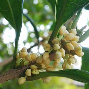 2年前に迎えた銀木犀の花が咲きました! 甘い香り✨✨✨ …と、うちにはみ出してるお隣の柊木犀😍