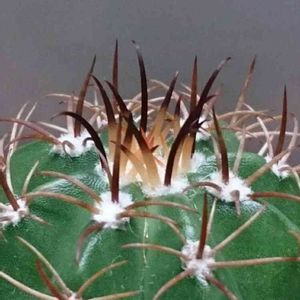 最初の頃、管理がまずくてだんだん調子が悪くなった。 水不足だと判断して、甘めの水やりに変更。 去年から少しずつ きれいになった。 緑がかった刺が好き。