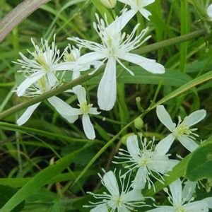 センニンソウ 仙人草 キンポウゲ科 仙人が続いてる😆 でも花は純白でGood‼️です 仙人草ってクレマチスの先祖だった❓️ 日本や中国に自生する原種のクレマチス(フラミュラ系)でつる性多年草 種の形が白い髭を生やした仙人を連想させることから名づけられた 花はほのかな香りがある マスクしてると、外して香りを嗅ぐということがほとんど無くなりましたね 残念なことです😣 🏷️蕊好きマニア