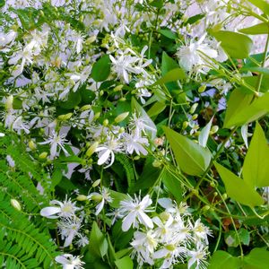 純白な花を咲かせている仙人草 たくさんのお花が見事です 🌱センニンソウ 仙人草 キンポウゲ科 クレマティス属