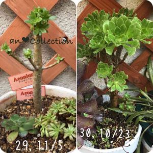 2017-11/7 🌤 こっちも復活組٩( 'ω' )و ❤︎ サンシモン ❤︎ ❤︎ 夕映え ❤︎ 小人の祭 ❤︎ 梅雨時期にサンシモン以外⭐️なってしもて無残にも棒だけなったケド🌱babyちゃんいっぱい😍 夕映えと小人の祭が仲間入り👍 ✴️ キ-ワ-ド「アエオニウム's❤︎」で綺麗な過去pic👀