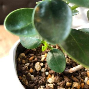 植え替えをしてから、数枚の葉が黄色くなって落葉したり、なんだか元気がないような気がして心配していたパンダガジュマル。 新しい葉が出てきてうれいしい😆