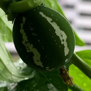 ウルウルウル🥺 蔓の先を追っていったら、スイカ模様が完成している充実した実があった。 メルカリで買ったブラックベリーの根鉢に"ゴーヤ"が紛れ込んでいた!😆と思って浮かれていたけど、完全完璧、まるっとリュウキュウスズメウリですね…。🥲 もっと明るい画面にしたかったけど、 軒先へ伸びた蔓を左手で手前に引っ張り、右手のみでiPhoneのフラッシュを📸焚きながらシャッターを切るのは、 私の手に余る曲芸だった…。😰 おまけに、久しぶりにキイロスズメバチらしき奴が音も無く近づいて来たので、慌てて室内に退散した。😱 残念だなぁ!😩これがみんな食べられる実だったら良かったのに。🥺 リュウキュウスズメウリの毒は「ククルビタシン、摂取しすぎると嘔吐や下痢などを引き起こす。」なんだそうな。🤮オエー 摂取し「過ぎる」のが何個分だか分からないけど、試食した人のブログ記事を読んだら、ゴーヤの比ではない苦さらしい。😬 実験はやめておきます。😑(`_´)ゞキリッ ところで、メルカリで購入したブラックベリーの根鉢から発芽した株だけじゃなくて、 うちにあった鉢からも2本ほど、葉っぱの形が同じ蔓が伸びている。 それも多分リュウキュウスズメウリなんだろう😑けど、どうして発芽したんだろう? 去年は花も咲かなかったのは確認している。 今年初めに、スノコを持ち上げて、下に溢れていた土を回収して植え替えその他に使ったんだけど、 それに伴う大攪乱で、一昨年の種が生き返ったのか?🤔 それも、自分で蒔いたのじゃない鉢から出て来たから、 ゴーヤと同じく、完熟した実がひっそりと爆発して💥💣種が土に埋もれていたのだろうか? じっちゃんの名にかけても、真実は一つでも、謎はサッパリ解けない。😅 言えるのは、このスイカ柄の実が強烈に美味そうだという事じゃ。🍉🤤 スイカや網目メロンは無理でも、マクワウリとかプリンスメロンはどうだろうとちょっと調べて見たけど、 かなり上級者向けなのね。😬 そもそも、うちの場合は積算日射量が足りないから、ダメっぽい。 酔芙蓉が、例年通り、この時期になってやっと蕾をつけているくらい、南西向きベランダって暗いからね。 失敗率が高いから高い種だと勿体ないな。 もし100均で種を売ってたら、実験しても良いけど、その場合も手摺り側を完全に明け渡さないとダメだろうなぁ…🤔 その場合、追い出されるメンバーの行き場所は?😩 と、もう鬼👹が笑い転げる🤣妄想モードなのであった…。🤯