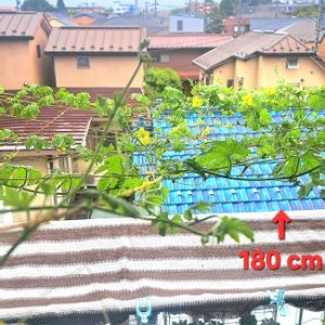 暴れるフウセンカズラ。 去年採れた種を萼?茶色の風船のままベランダに出しっぱなしにしていたら、大風で吹き飛んだ。 無くなっているのに気付いたのが、今年の蒔き時になってから。室内に残っていた、小さい種を掻き集めて蒔いた。 この位置に置ける小さい鉢(5号?)3つから、合計5本しか株が育たなかった。それに西洋アサガオが1株同居している。 西洋アサガオ(100均DAISOの種)はフウセンカズラと同時に蒔いたが、前夜水に漬けておくのを忘れたせいか、フウセンカズラより発芽が遅かった。 10年前にグリーンカーテンをベランダの手すり側に仕立てようと思い立ち、工夫してきたが、数年前に諦めた。 突っ張り棒立てて蔓植物用のネットを張ってゴーヤを育ててみたわけだが、6階で作業する危険性に結果が見合わなかった。 南西向きなので、日当たり不足。果樹と違い、短期間に一気に育てなければならないゴーヤは向いていない…。 しかし、手すり側のグリーンカーテンは諦めたにせよ、フウセンカズラの種が手元に残っているからには、蒔かないわけにはいくまい。😁 このくらい少ない株でこれくらいの面積を覆えるのだからフウセンカズラ、最強! この下を通ると、ハラハラと小さい白い花びらが散る。 ヤマザクラのこっち側の株は、去年から調子が悪くなって、もうすっかり落葉している。咲かないから花吹雪も無い。 咲いてくれないかなぁ。