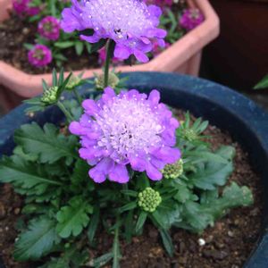 土曜日に、アリッサムと一緒に撮ったスカビオサシンフォニーさん、綺麗な花です🌸 咲いたら摘んでを繰り返し、今も元気です、蕾が可愛く色づくところが好きです💕
