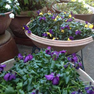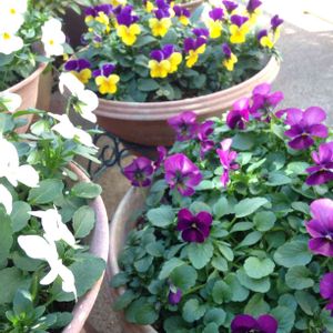 前の方のビオラは白ビオラと一緒に植えてましたが、白が終わったので、お一人様植えしてた後ろのビオラと一緒に植えました、もう少し楽しめそうです✨
