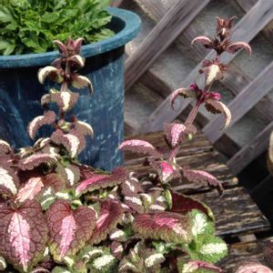 こんにちは〜 ラミウムの蕾が咲いてきました🌿変わったお花ですね🌸