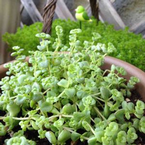 おはようございます☀ 晴れてるけど、風が強いです💦 多肉ちゃんに魅せられてまた、2つ買ってきた中の1つ セダム、丸葉万年草🌿
