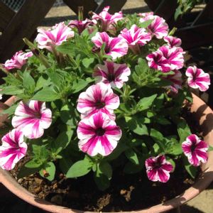 おはようございます☀ 5月6日に植え、✂️して、今日は花数がだいぶ増えました😊 ペチュニア、ピンクストライプ🌸