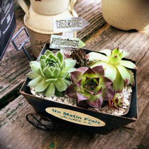 勤め先にて…初アレンジメントに挑戦(*´∇`*)!! お客様が選ばれたブラックボード付きのカフェ看板のようなモノの下部に付いている木箱部分に、多肉の寄せ植えをしました✌︎('ω')✌︎ 気に入って頂けたようで、ホッとしました〜〜😊✨✨ 妹さんへのプレゼントだったようですが、「自分のぶんも欲しい!」と言われていました💗😆💗 作ったあたしも欲しかったりするんですがね…😜 やっぱり、多肉の寄せ植え楽しい♫