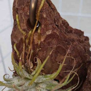 着生させるつもりなかったですが、最近あまりに健気ににょきにょき根を出すので、くっ付けてみました。数ヶ月前に購入した時から子株さんいて固定しにくく、仕方なく固くなった根の部分だけで留めてます…自力ではよ着生してね🙇