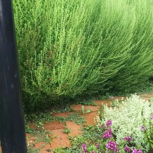 種から植えたコキア よーく見ると左下の方から赤く紅葉してきてます(^-^) 夏の間頑張って120センチ程になりこれからがいよいよ真っ赤に染まった姿を見せてくれる季節になってきました。