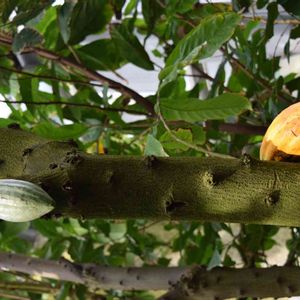カカオってこんな風に成るんですね(´⊙ω⊙`) こういう実のつけ方をする植物があるとは知らず、最初に見た時は造木かと思ってしまいました。驚き。面白い。
