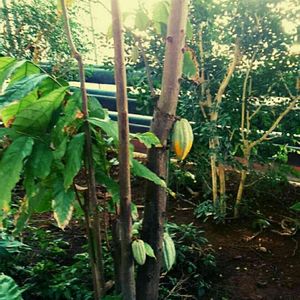 つくば市にある植物園。 カカオの木を見上げたら… カカオが、なってました。 実物は、はじめて見たので興奮しちゃいましたね。