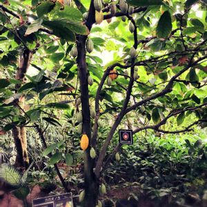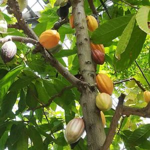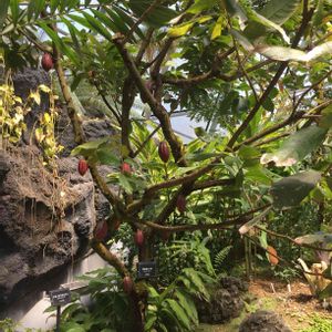 東京都薬用植物園の温室にて.. チョコレートやココアの原料で有名なカカオ、沢山実をつけてました。