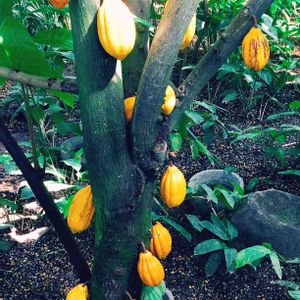 カカオ at フィジー 旅先シリーズ第6段 初めて木を見た時の驚き。 幹から直接実が出てる…!!なんで、こんな形になったんでしょうね。不思議。 テレビでチョコレートの作り方を見て、カカオから作ってみたい!と思っていました。 フィジーに行ったときはもうカカオの時期じゃなかったそうですが、市場を探し回ってようやく見つけました。 また、お住いの方のお庭にカカオがあり、譲って頂きました。 種を発酵、ロースト、潰して、混ぜる、という結構手間なことをしましたが、香りだけはチョコになりました。 100円で板チョコを買ったほうが美味しくて安い。笑 カカオの果肉も食べられるのですが、ヨーグレットみたいな、白くて甘い果実でした。 とても面白い経験をしたと思います。