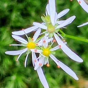 今日のお花、ダイモンジソウ❗ 登山道の脇の水場 暑い日、3時間歩いた後の冷たい水😋 一息ついて脇を見ると白い繊細な花がたくさん🤍🤍🤍