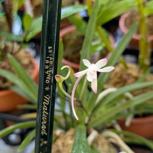 こんにちは↝↷ 1️⃣セッコク あなた…高嶺の花やったね〜🤗 私は高芽の蕾 しかもキチガイかも!? 1️⃣ヒペリカム…私もキチガイ!? (季違い) 3️⃣4️⃣風蘭(私はだぁれ?) 札落ち名無しの「権兵衛」に変わった形の花が咲きました 本名をご存知の方 教えて下さい🙏宜しくお願い致します🙏 5️⃣あれッ?にわッ?の今日の花 暑さに負けず生きてます🌹🌼 私もなんとか息してます👴 ご覧頂きありがとうございますm(_ _)m