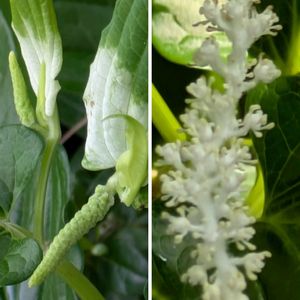 こんにちは〜 予想気温38℃?? お互い気を付けましょう! 今日のお花 半夏生 1️⃣どれどれ みせてんね… ドーランば塗っとぅしゃ~ 昔の旅役者さんの白粉に似てる!? おぼろげに~~~😴 2️⃣マンゴーにまんご👶(孫)が生まれた😄 先ずはお芽出た〜 推定年齢0歳10日から2週間 ご覧頂きありがとうございますm(_ _)m