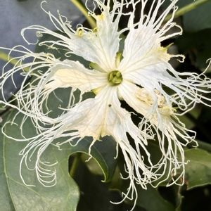 🐦⬛カラスウリ(烏瓜) お盆の18時半頃になると日が短くなり、夜にだけ咲くカラスウリの花を見ることができます。なかなか見れないので「男嫌い」の花言葉がつきました。 ⚫︎ウリ科 カラスウリ属 ⚫︎原産 日本 ⚫︎花期 7月〜9月