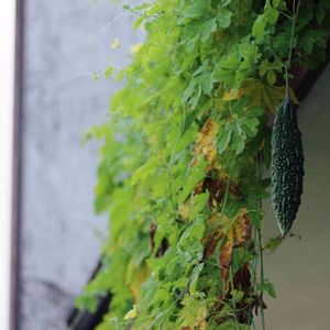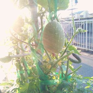 畑からベランダに向けてのグリーンカーテン✨ 黄緑色のゴーヤと四葉系キュウリのシャキット&味さんごがカーテンになっていますが、ゴーヤが一番強い印象です😓 黄緑色のゴーヤは去年も植えたのですが、見た目が白ゴーヤにしか見えないのが何とも…😅