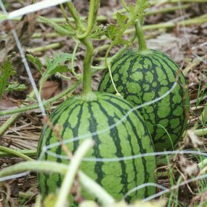 畑にスペースができたのでマクワウリを植えてみました😊ちゃんと支柱を登ってくれるかな🍈