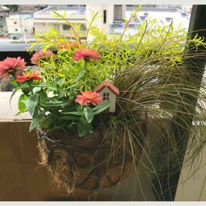 久々の寄せ植え ジニアとメラウレカだけでは明るすぎるのに、カレックスが入ると途端に雰囲気が落ち着くのが面白かったです