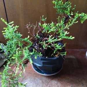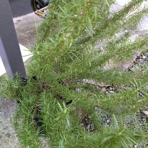 ローズマリー 子株が育って、3年目で植替え、木化しています。常緑で、香りがいいので玄関口に置いています。