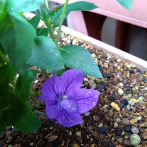 桔梗が咲いた 3年目の桔梗が今朝咲きました。去年は6月中旬の開花。蕾にも気が付かず。