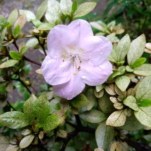 サツキの咲き始め 1輪先行して開花。 薄ピンクの花弁、初夏の顔です。