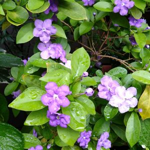 ニオイバンマツリ 今週開花、つぼみたちがふくらんでます。はじめは紫で、花弁が白に変わる面白い子です。